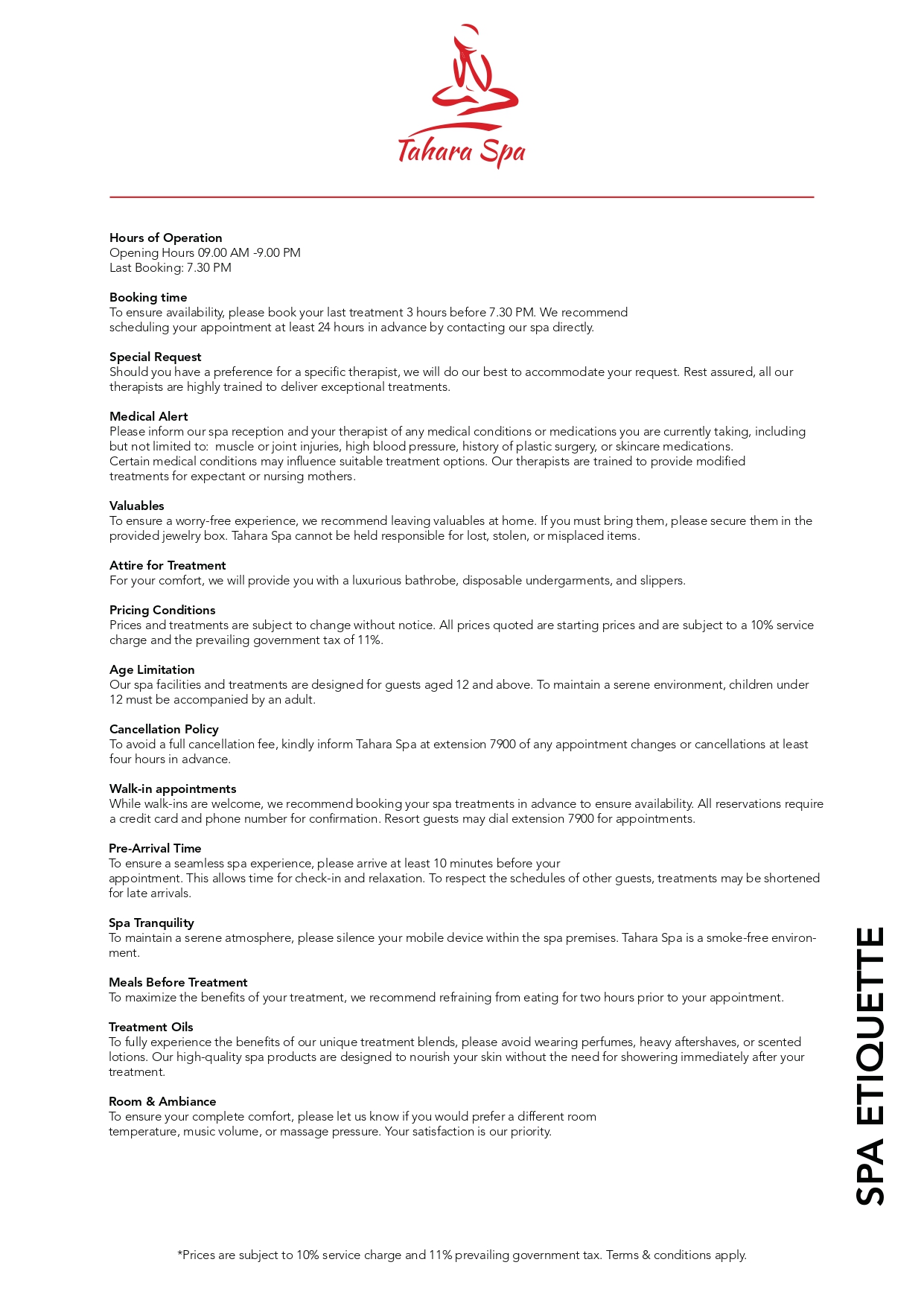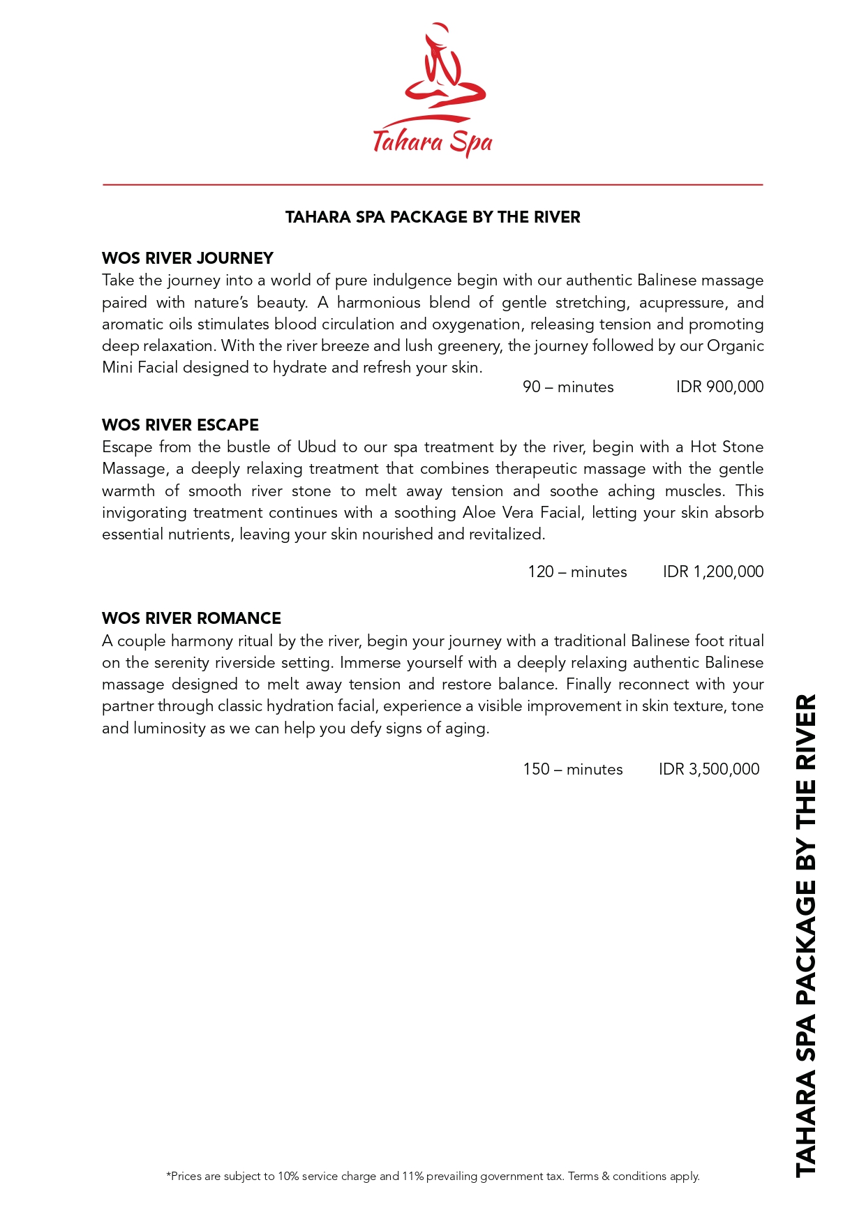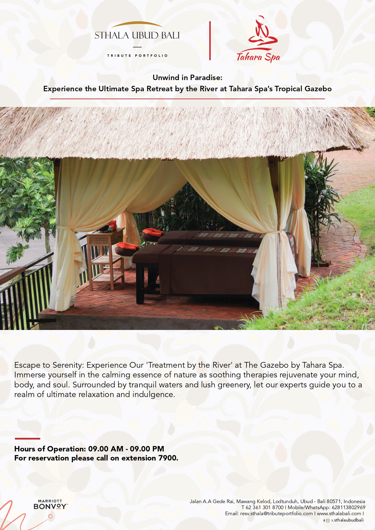 Escape to Serenity: Experience our ‘Treatment by the River’ at The Gazebo by Tahara Spa. Immerse yourself in the calming essence of nature as soothing therapies rejuvenate your mind, body, and soul. Surrounded by tranquil waters and lush greenery, let our experts guide you to a realm of ultimate relaxation and indulgence.